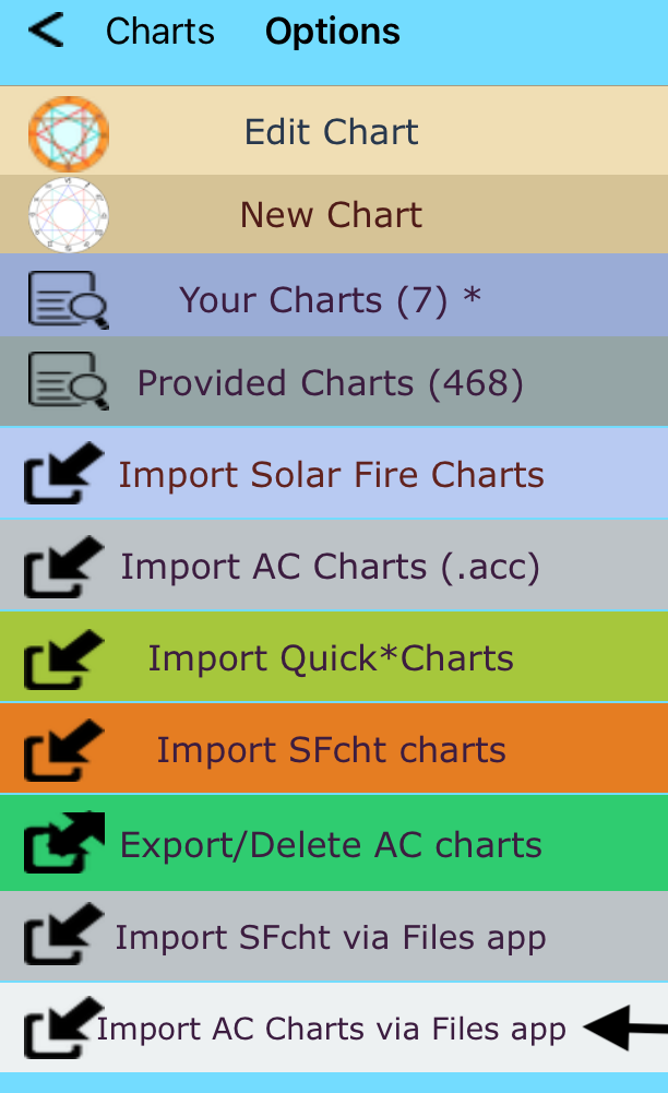 From AC ver 3.33 (iPad/Mac) and iPhone ver 1.37 importing/Exporting a AC chart file can be done using the iOS Files app (Dropbox not required). Please see: