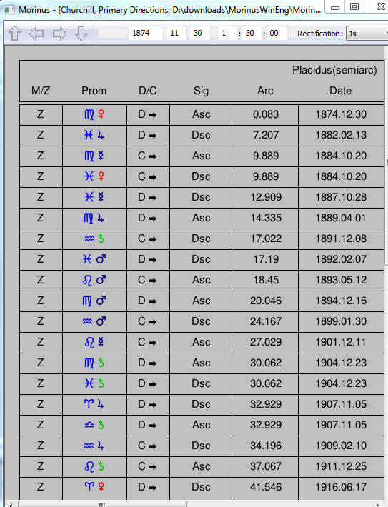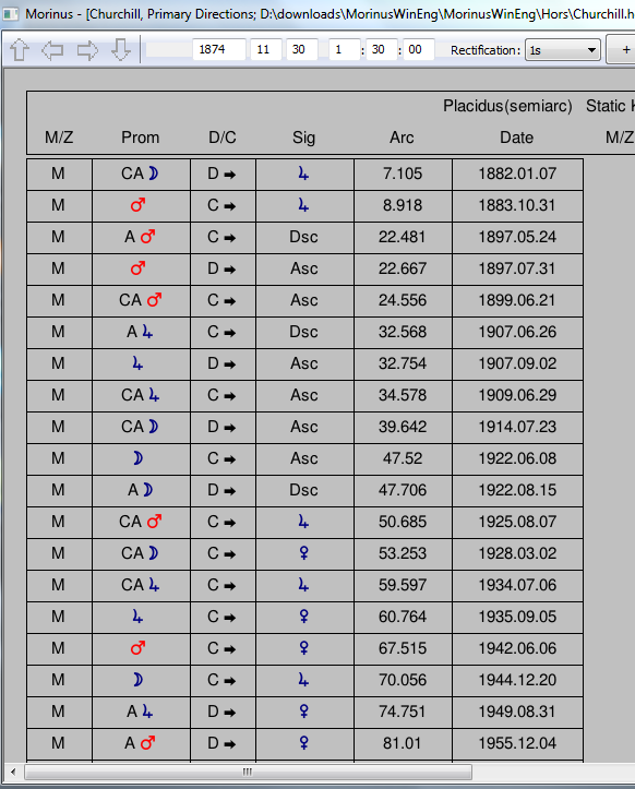 For comparison: Morinus – Churchill tropical antiscia aspects Primary Directions mundane example