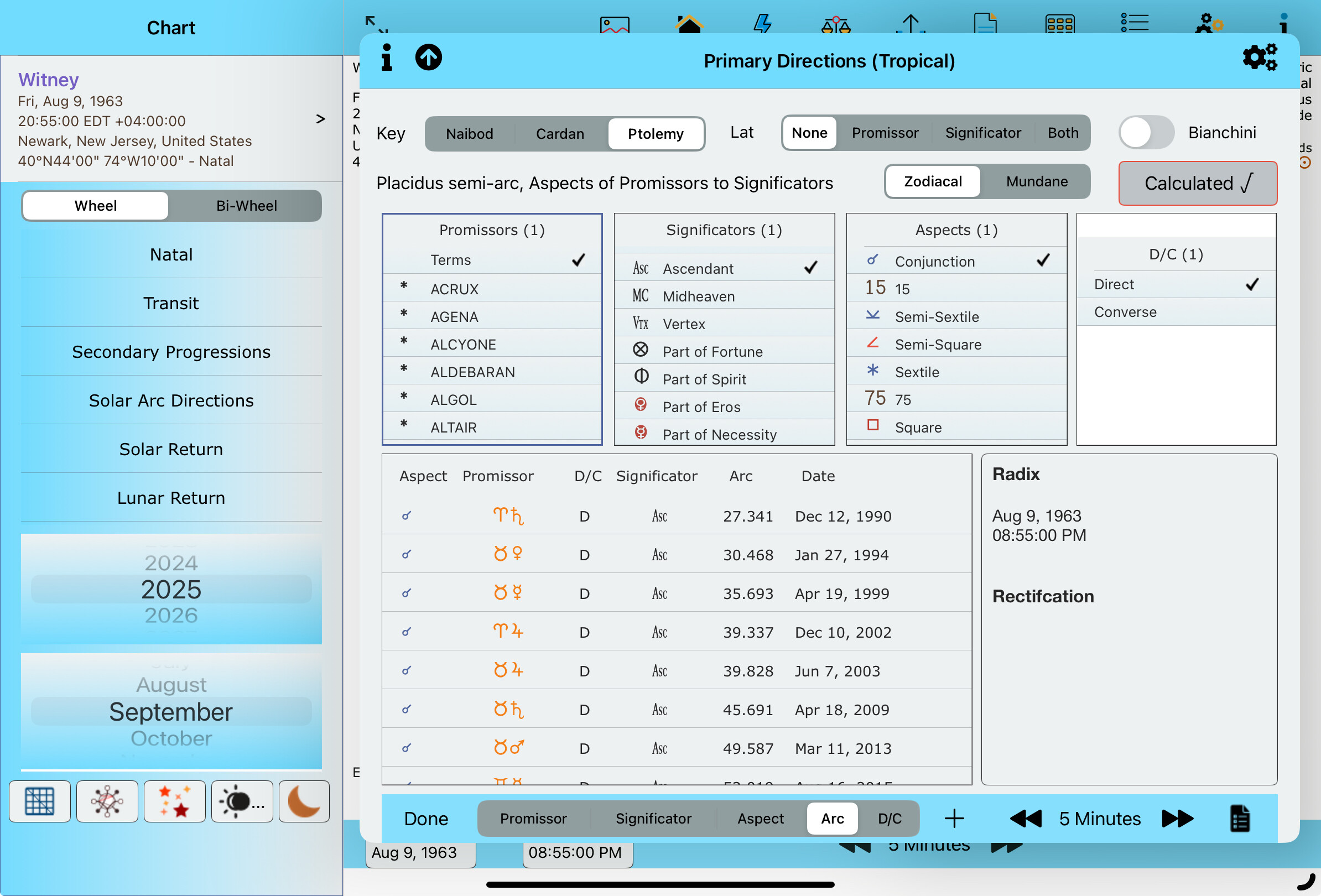 Primary Directions Tests and Comparisons – tropical and sidereal.