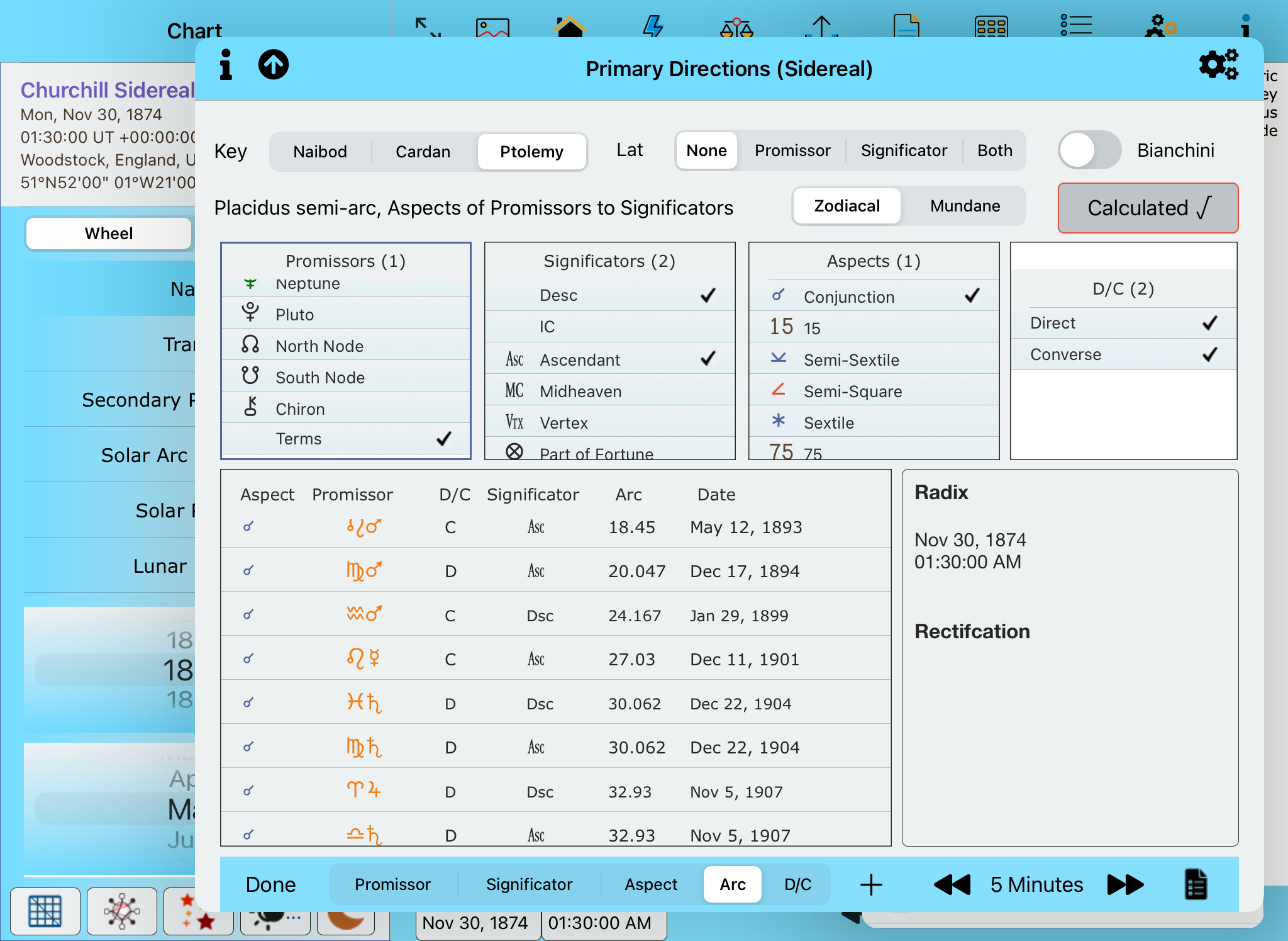 AC Churchill Sidereal Terms to Asc Primary Directions zodiacal #2